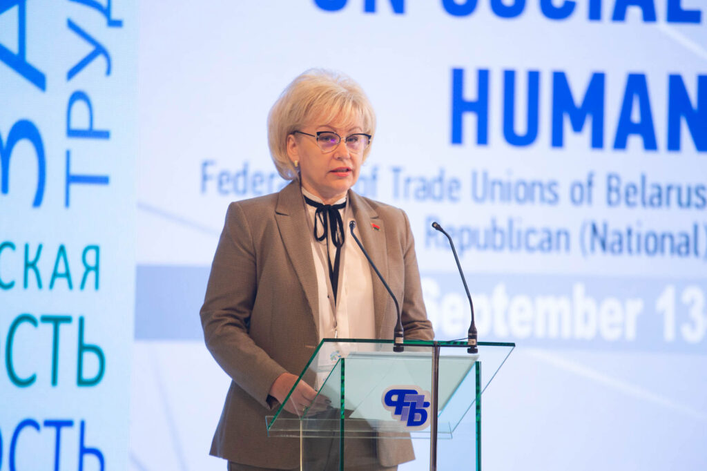 Геращенко Оксана Тимофеевна, председатель Белорусского профсоюза работников торговли, потребительской кооперации и предпринимательства и Мариничев Валерий Николаевич, заместитель председателя Белорусского профсоюза работников торговли, потребительской кооперации и предпринимательства тоже приняли участие в конференции.