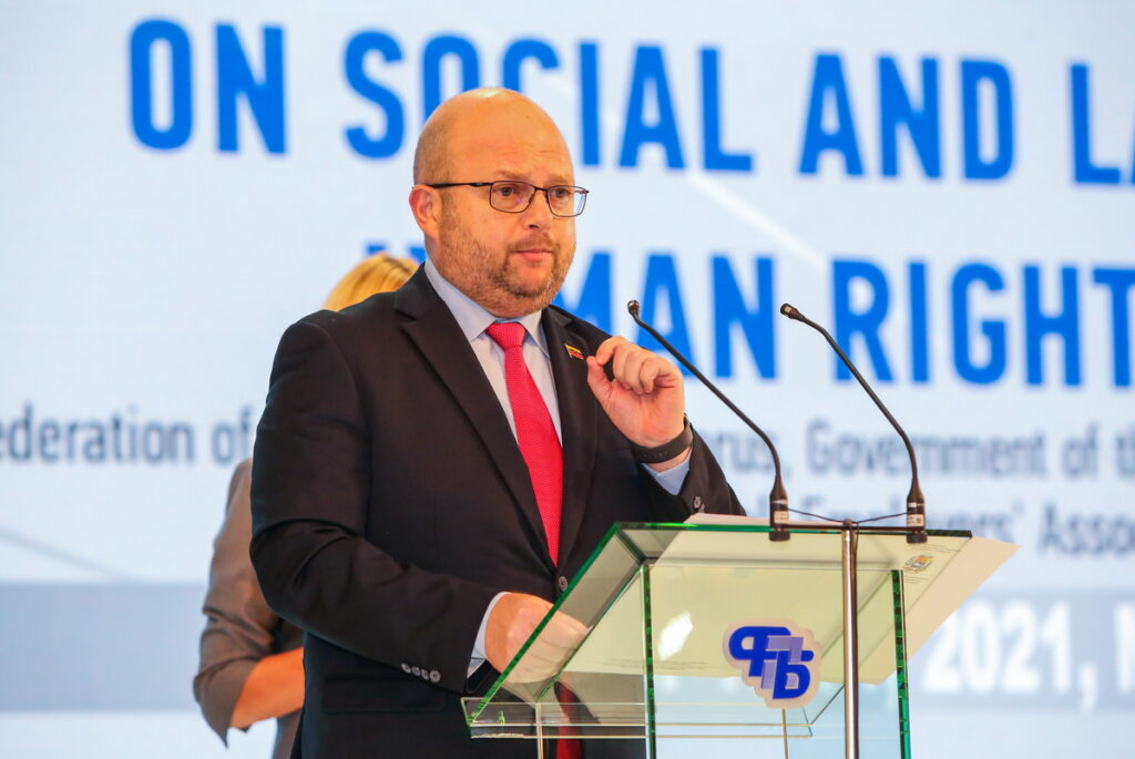 Заместитель председателя Федерации профсоюзов Беларуси Вадим Грачев проинформировал, что во время конференции была достигнута договоренность о заключении соглашения между Федерацией профсоюзов и Белорусской коллегией адвокатов. И на основе этого соглашения будет проводится совместная работа по защите интересов трудящихся в международных институтах и судах.