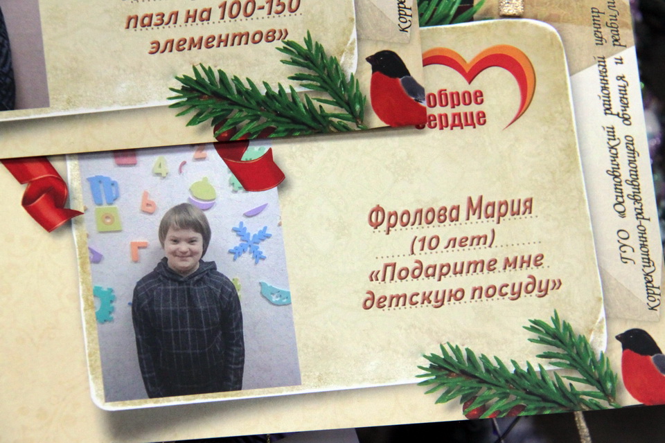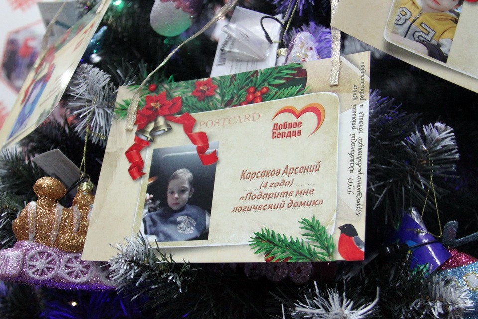 Благодаря ей на втором этаже Центрального универмага появилась необычная елка. Наряду с традиционными шарами, мишурой и гирляндой ее украшают открытки с пожеланиями особенных детей.