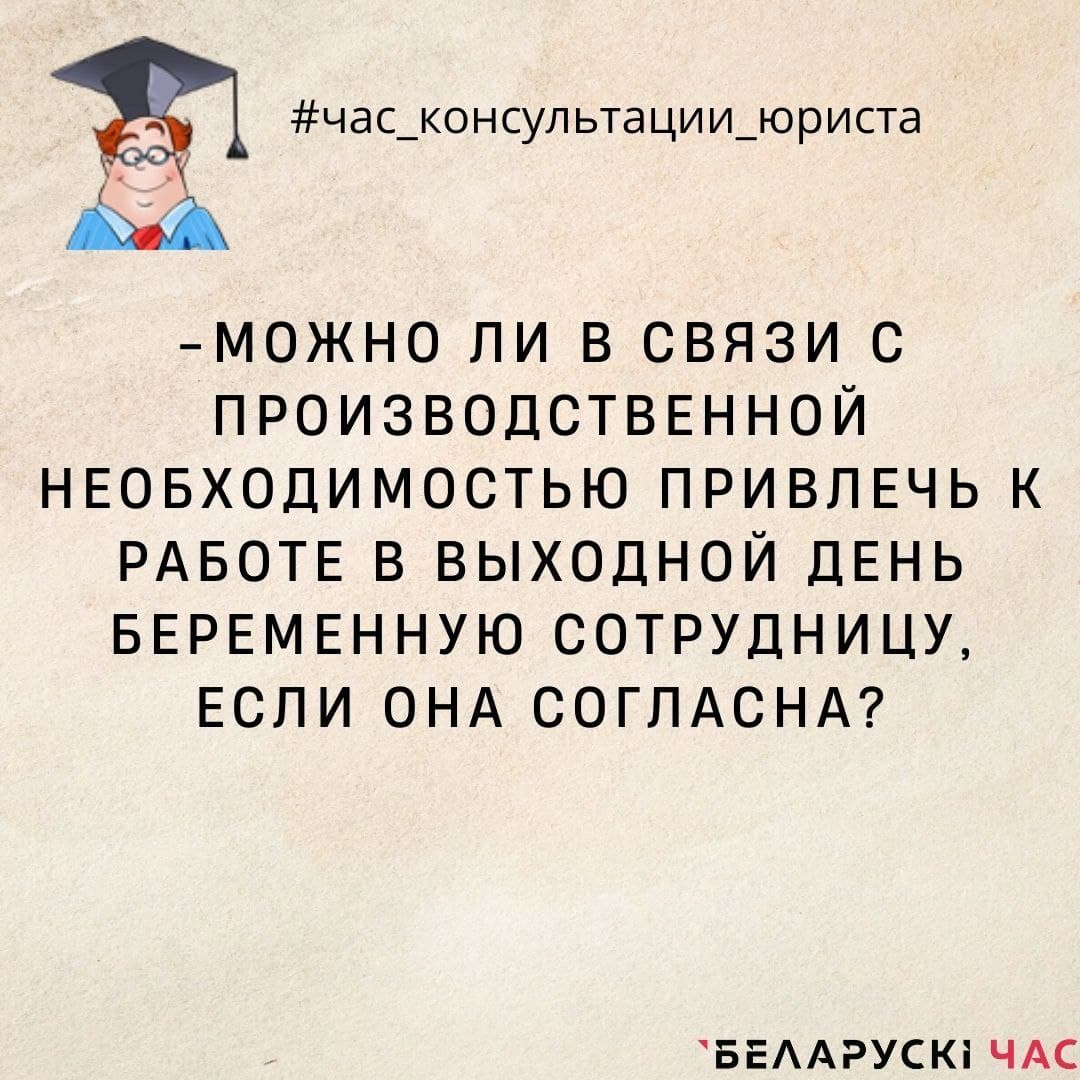 Отвечает профсоюзный юрист Ирина КЛИМОВИЧ. – Нельзя. В соответствии со ст.263 ТК с письменного согласия привлекаться к сверхурочным работам, работе в государственные праздники и праздничные дни, в ночное время, выходные дни и направляться в служебную командировку могут женщины, имеющие детей в возрасте до 14 лет (детей-инвалидов – до 18 лет). По отношению к беременным женщинам […]
